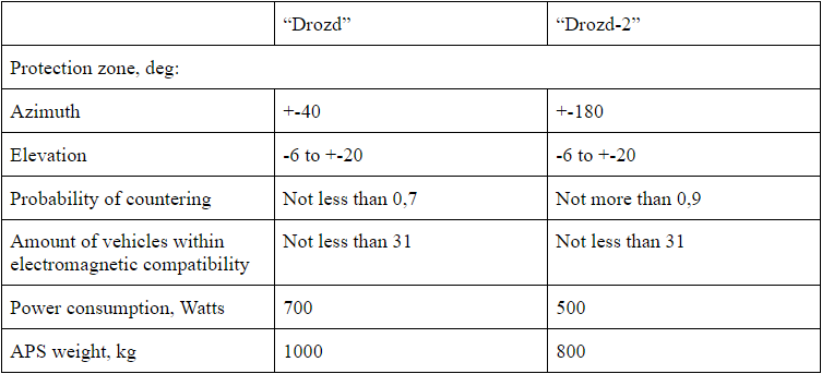 Further research and development were done, the usage of improved projectile detection and signal processing, more effective explosive fillers, allowed the creation of a more improved variant with enhanced performance. "Drozd-2" improved on the performance of "Drozd".